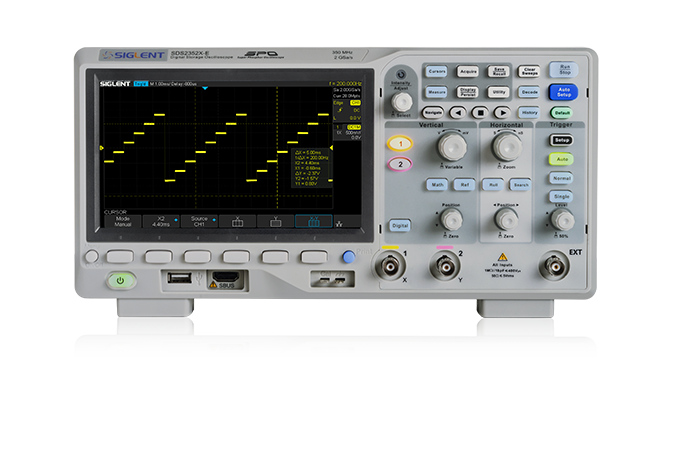 | SDS2352X-E | 350 MHz | 2+EXT | 2 GSa/s | 110,000 wfm/s (normal mode) | 28 Mpts/CH | €729 | Discontinued |