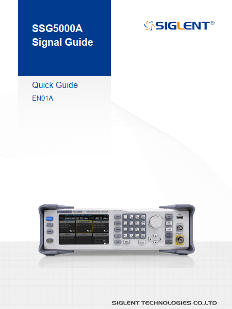 Siglent> Accessories> Quick Start Guide-SSG5000AQuick Start Guide-SSG5000A September 14, 2022 A quick guide about how to operate SSG5000A. Contact Sales Support