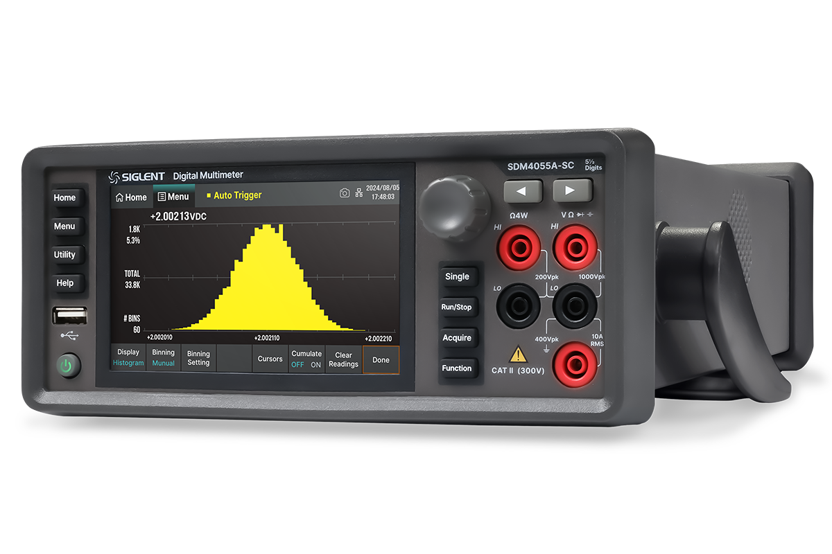The SDM4055A digital multimeter and SDM4055A-SC digital multimeter are designed with 5 ½ digits readings resolution and dual-display, especially fitting to the needs of high-precision, multifunction and automatic measurement.