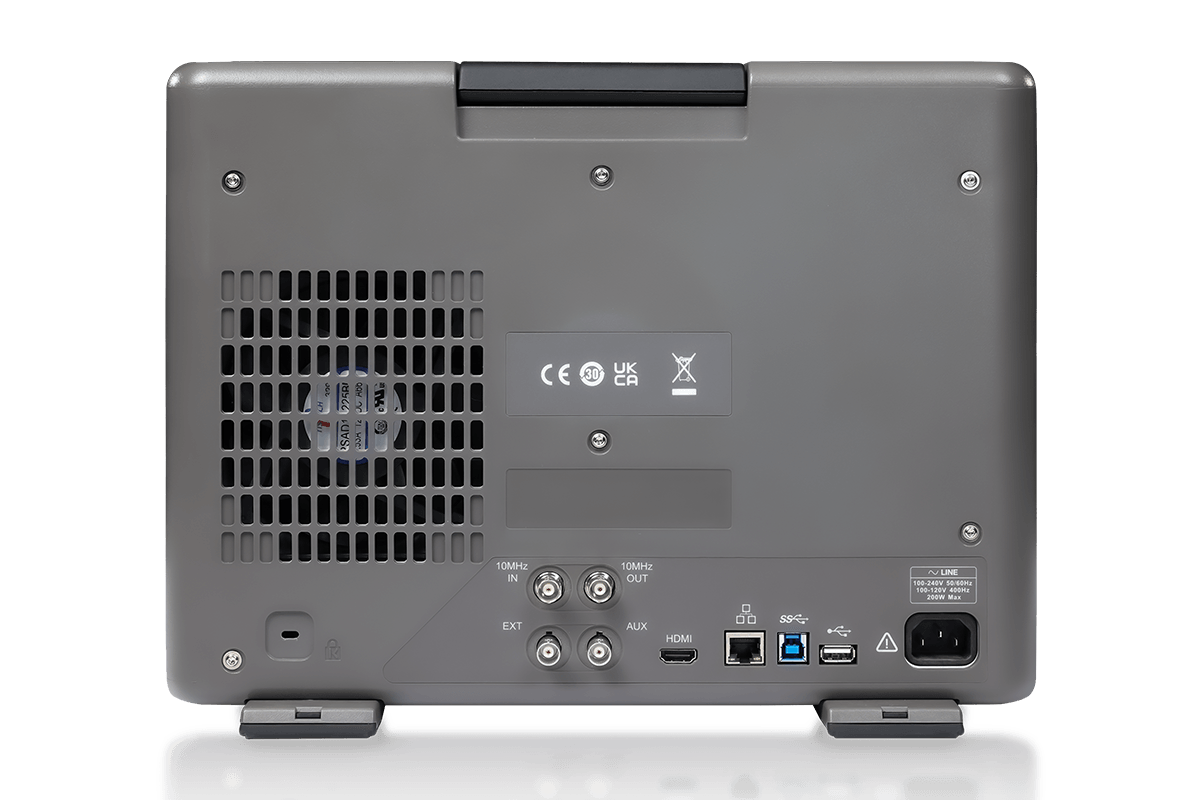 - Interfaces include: 2x USB Host 3.0, USB 2.0 Host, USB 3.0 Device (USBTMC), 1000M LAN, HDMI, External Triger In, Aux Out (Pass/Fail, Trigger Out), 10 MHz In, 10 MHz Out