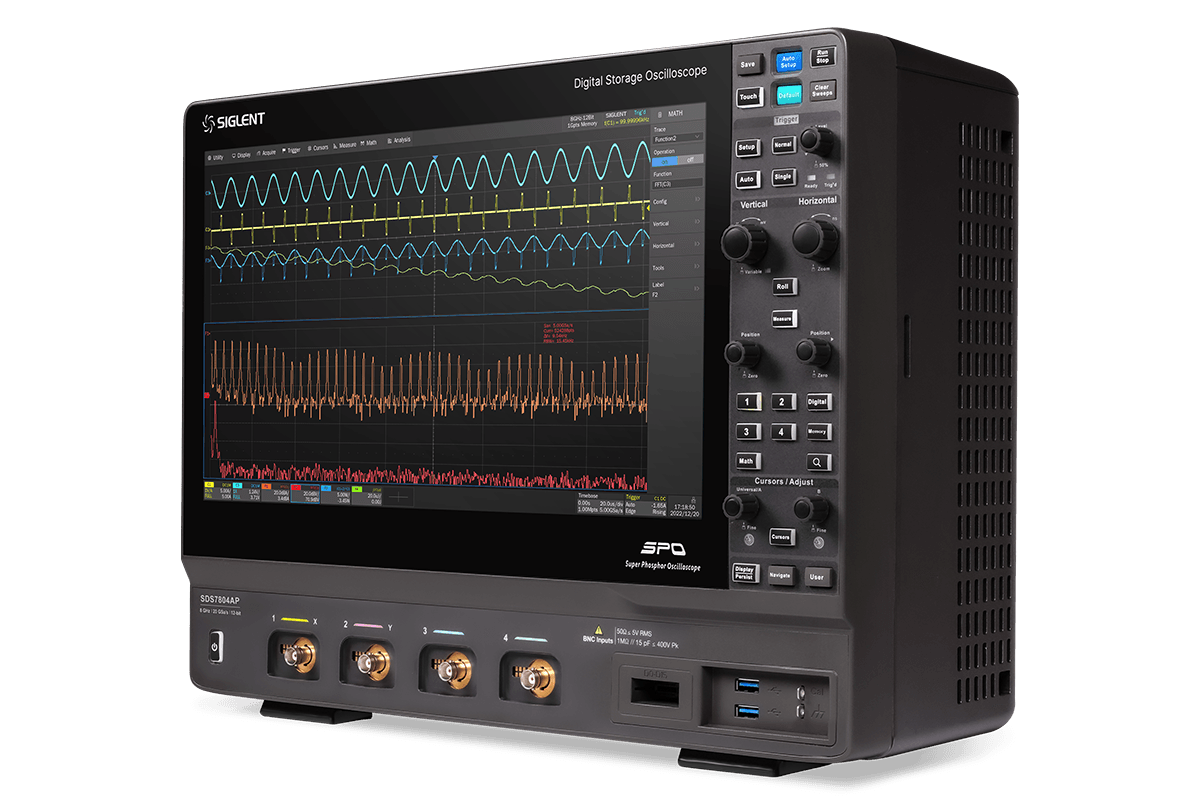 SIGLENT’s SDS7000A series Digital Storage Oscilloscopes are available in bandwidths of 8 GHz、6 GHz、4 GHz and 3 GHz, have 12-bit ADCs with sample rate up to 20 GSa/s, maximum record length of 2 Gpts/ch, and display up to 4 analog channels + 16 digital channels for high performance mixed signal analysis.