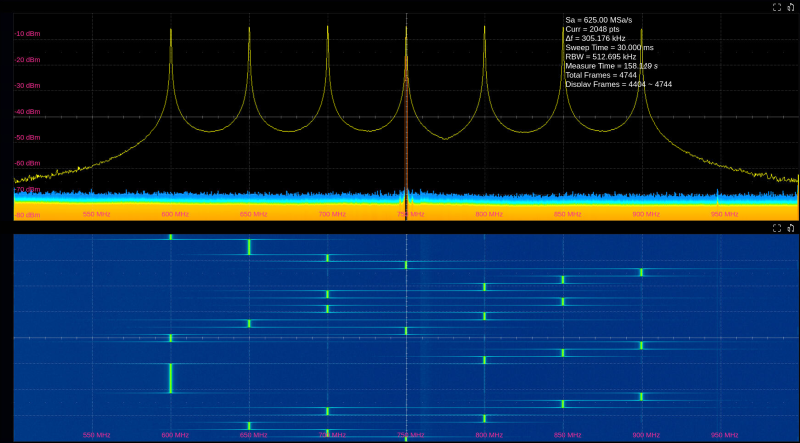 FFT supports up to 32 Mpts operation. This provides high-frequency resolution with a fast refresh rate. The FFT function also supports a variety of window functions so that it can adapt to different spectrum measurement needs. Three modes (Normal, Average, and Max hold) can satisfy different requirements for observing the power spectrum. Auto peak detection and markers are supported.