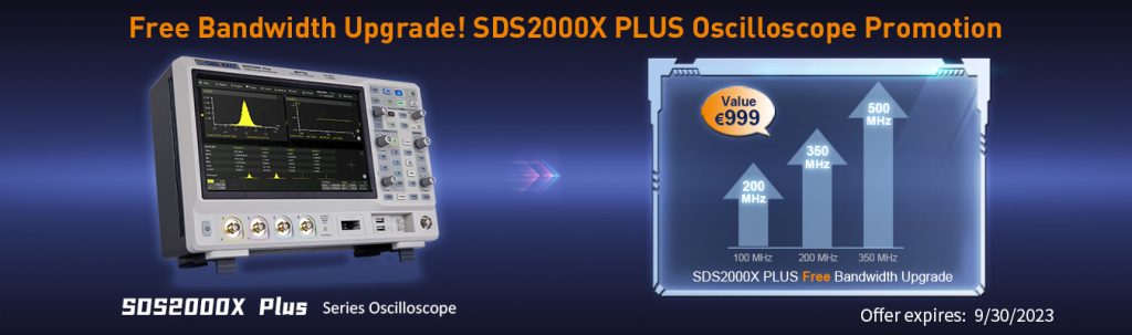 Purchase any 4 channel SDS2000X PLUS model from 5/1/2023 through 9/30/2023 and get a free bandwidth upgrade. To learn more about the feature-rich SDS2000X Plus, click here: https://www.siglenteu.com/digital-oscilloscopes/sds2000xp/