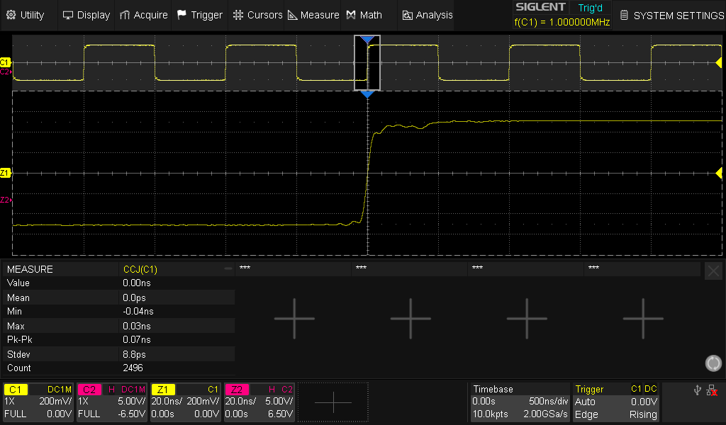 EasyPulse is optimized for pulse signal generation. It is capable of producing pulses as narrow as 8 ns with fast rising/falling edges that remain stable across frequency variations. It allows for wide-ranging, fine-grained adjustments of edge timing and pulse width, making it ideal tool for generating high-precision pulse signals.
