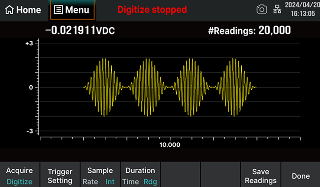 ![]() | Digitizer Function(SDM4065A) Outperforms oscilloscopes and spectrum analyzers in high-precision, low-frequency sampling, particularly suitable for audio signal digitization. |