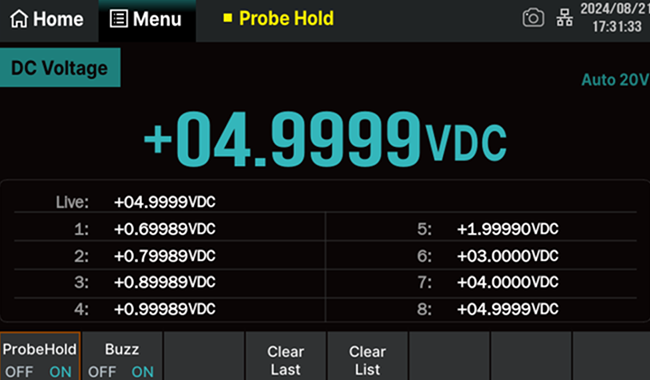After the readings stabilize, the multimeter buzzer sounds and displays the results, automatically retains the latest eight readings for users to compare and refer to. Users can access historical data at any time for in-depth analysis of equipment performance or parameter changes, and the displayed data can be cleared with a single click.