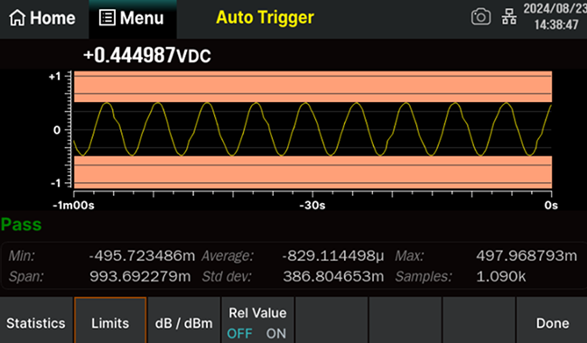 SDM4000A supports five operations: statistics, limits, dBm, dB, and relative measurements. It rapidly calculates max/min, average, peak-to-peak, standard deviation, and sample count, while enabling pass/fail testing via preset thresholds. Voltage-to-power conversion, dB-based relative measurements, and deviation analysis further enhance versatility.