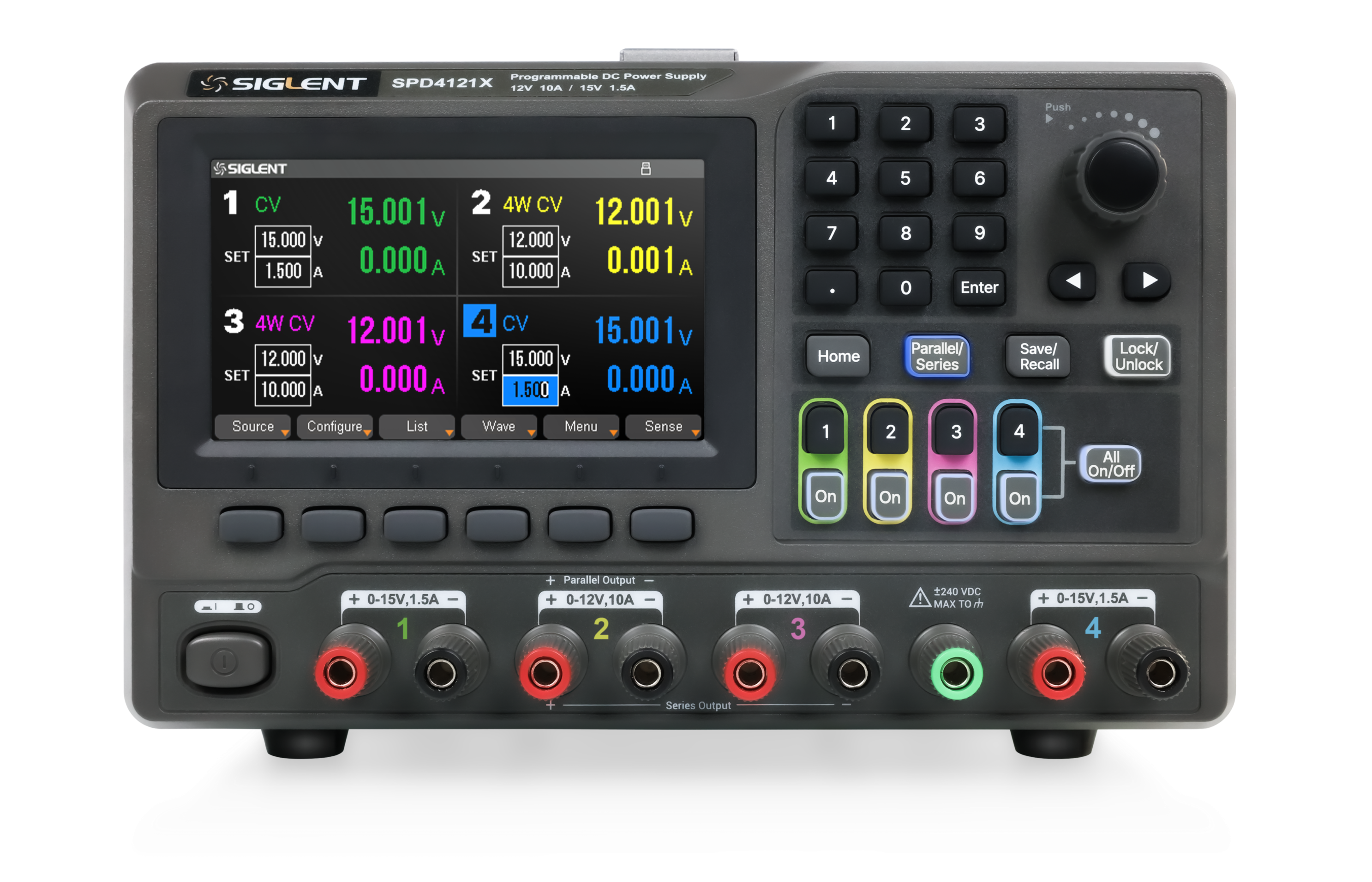 | SPD4000X | 1/2/3/4 channel;32V, 12V, 30V; 240W, 285W, 400W | 4.3" TFT-LCD 5-digit voltage and current display | 1mV, 1mA | Voltage:±(0.03% of reading+10) mVCurrent:±(0.3% of reading+10) mA | Voltage:±(0.03% of reading+10) mVCurrent:±(0.3% of reading+10) mA | €630-€910 |