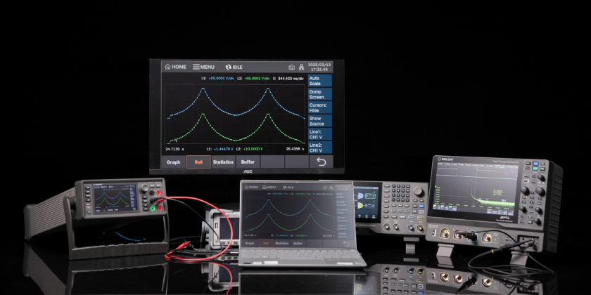 The SMM3000X series provides multiple display modes—Graph, Roll, and Measurement Results views—for comprehensive data analysis. The Graph view enables real-time curve plotting of mathematical operations, the Roll view displays time-domain waveforms, and the Measurement Results view presents statistical summaries of trace data. This multi-view architecture supports multi-dimensional parameter analysis for intuitive interpretation of test results.