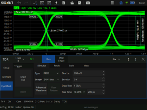 TDR provides time-domain reflection, transmission analysis and eye diagram simulation analysis functions, compared with ordinary frequency-domain analysis, it can quickly locate the fault point, determine the type of fault, can use the built-in virtual code generator to generate simulated eye diagrams, with jitter injection function to simulate the impact of the input signal with jitter on signal transmission.